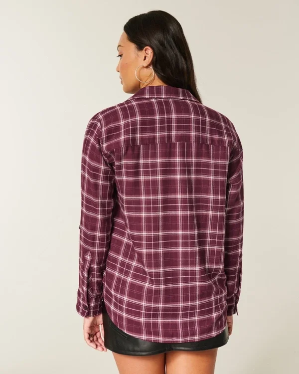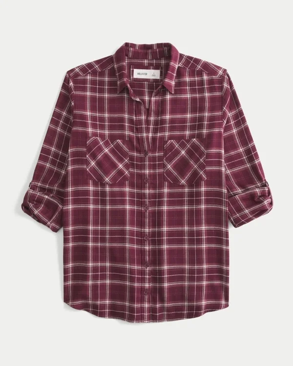 A super soft flannel shirt with a full button closure, chest pockets and button-up sleeve tabs. Collar. Oversized Fit.