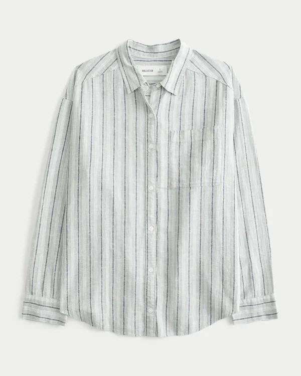 Your new fave shirt is made with a soft linen blend and is designed with a full button closure and left chest pocket. Curved hem, collar. Oversized Fit.