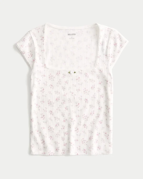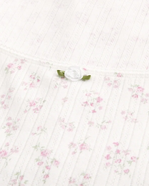 Your new fave top is made with super soft pointelle fabric and features a square neckline with a cute rosette detail at the center and picot trim. Slim Fit.