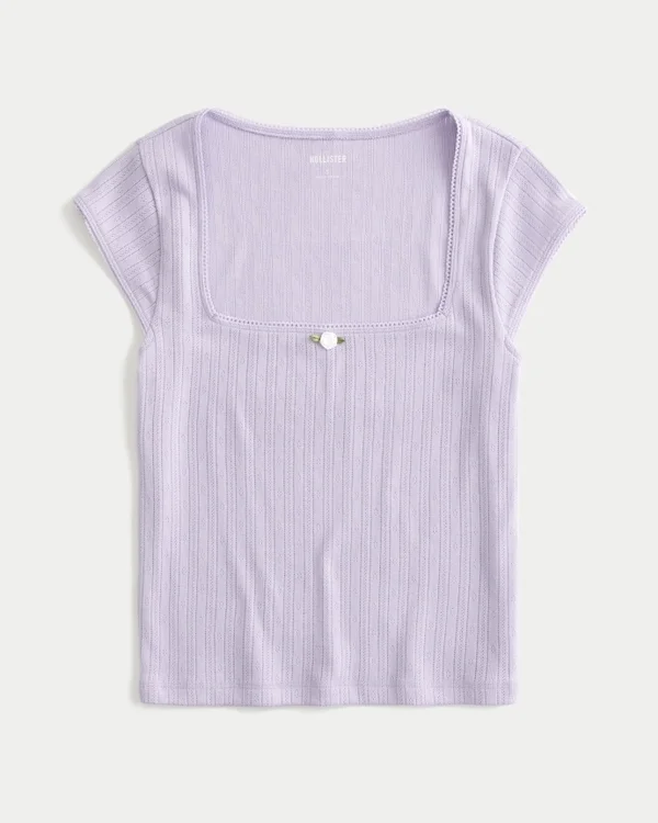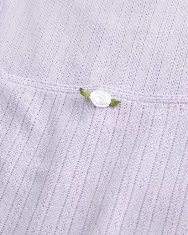 Your new fave top is made with super soft pointelle fabric and features a square neckline with a cute rosette detail at the center and picot trim. Slim Fit.