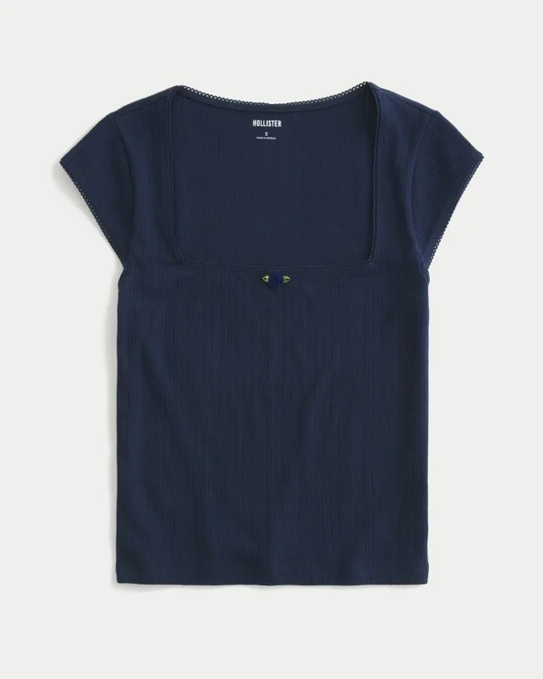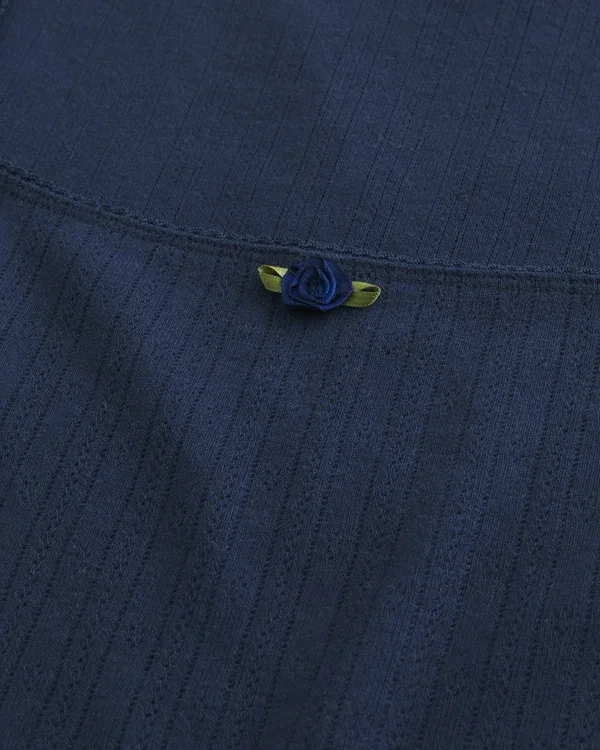 Your new fave top is made with super soft pointelle fabric and features a square neckline with a cute rosette detail at the center and picot trim. Slim Fit.