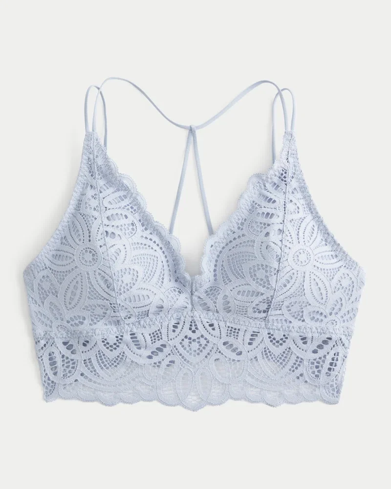 Cute and comfy, this bralette features all-over crochet-style lace detailing and a strappy back. Perfect for layering or wearing on its own!