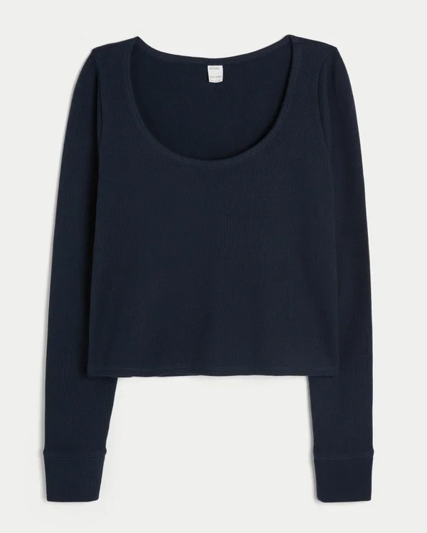 A super soft long-sleeve top in cozy waffle fabric, with a scoop neckline.
