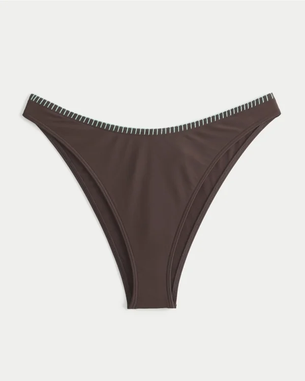 This cute bikini bottom is designed with a high-leg silhouette and mid-rise waist. Stitched trim along the waist, cheekiest coverage.