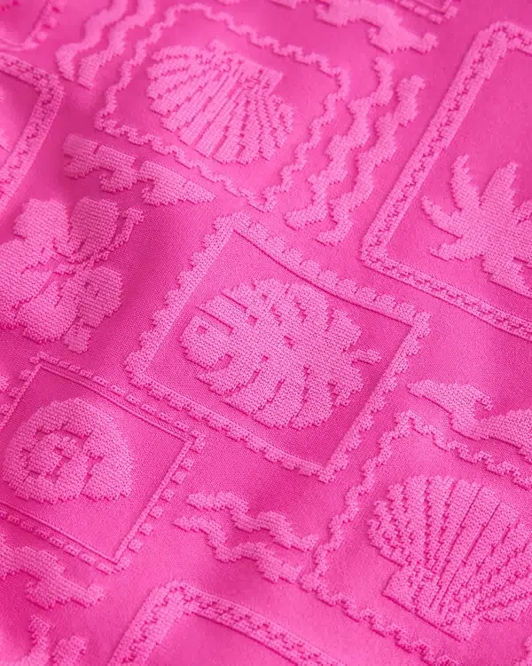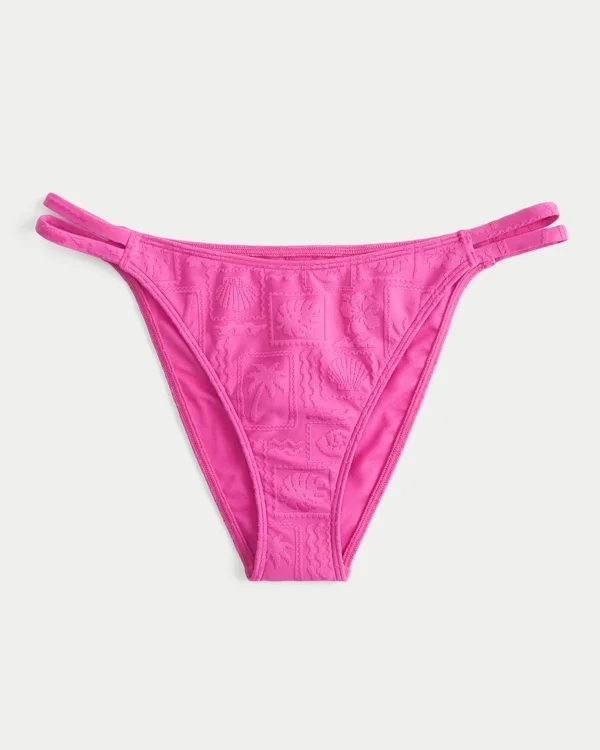 A cute and comfy bikini bottom in soft swim fabric with textured jacquard patterns. Double side straps, cheeky coverage.
