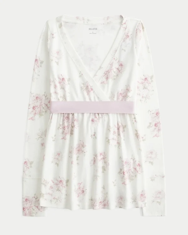Cute and super soft, this long-sleeve babydoll top has a flowy hem and wrap-style v-neckline. Long sleeves, satin band at waist. Easy Fit.