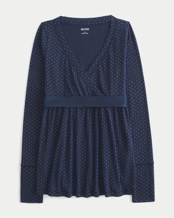 Cute and super soft, this long-sleeve babydoll top has a flowy hem and wrap-style v-neckline. Long sleeves, satin band at waist. Easy Fit.