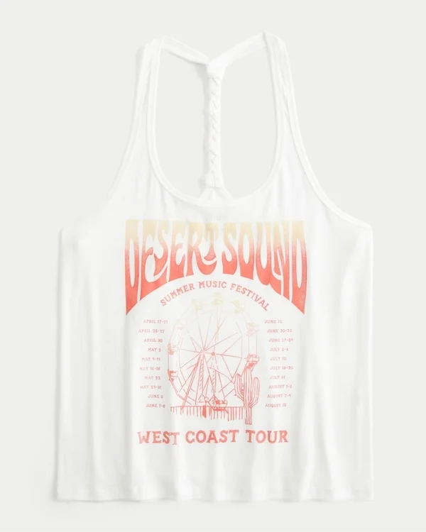 A super soft tank featuring Desert Sound Summer Music Festival print graphics and a braided racerback. Drapey silhouette, scoop neckline. Easy Fit.