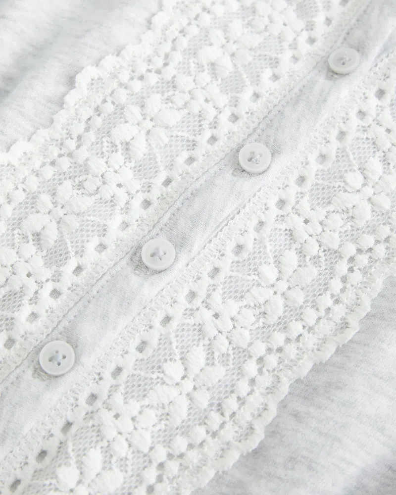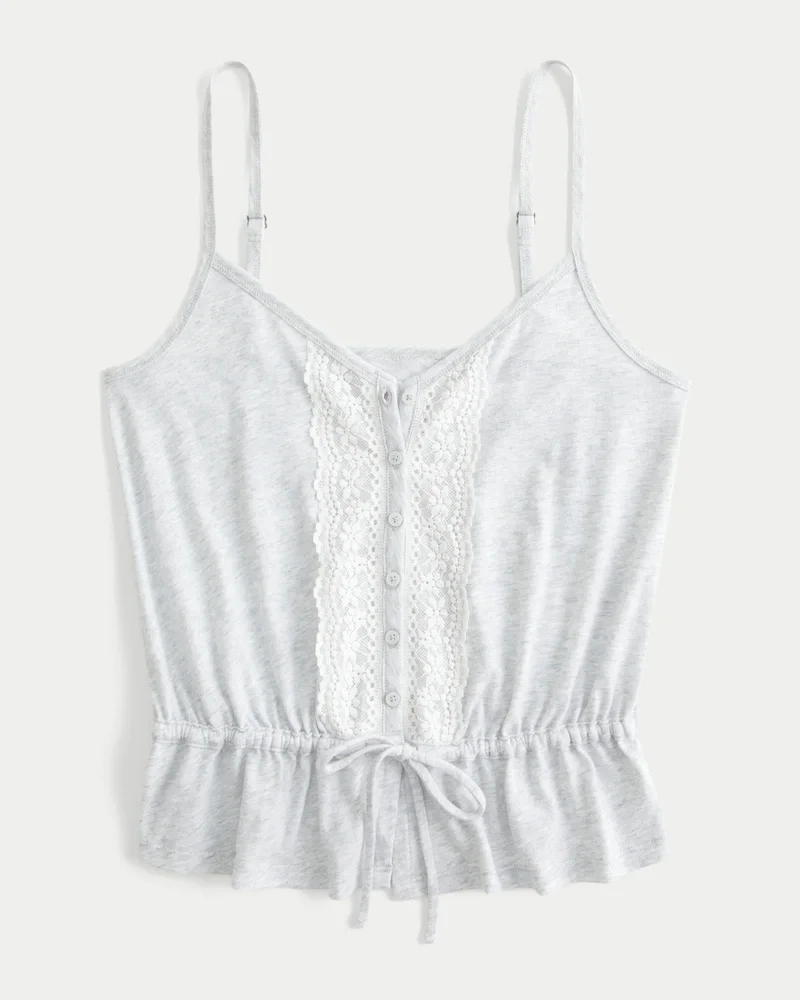 Pretty and super soft, this peplum top features a full button closure with lace detailing. Waist tie, adjustable straps. Easy Fit.
