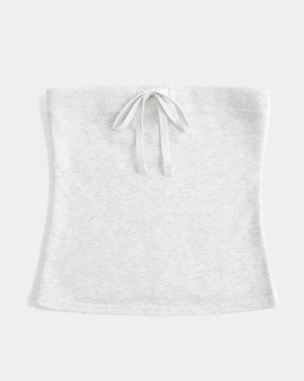 A cute and comfy tube top in super soft fleece fabric. Front tie at the neckline, strapless. Slim Fit.