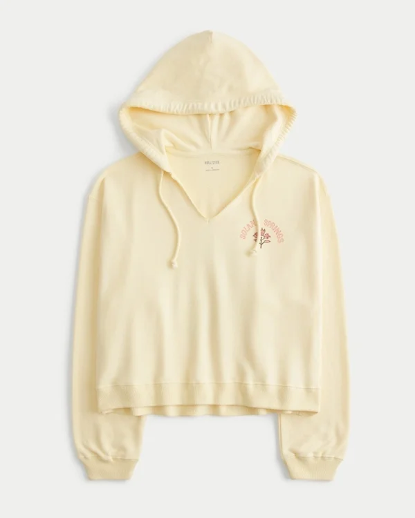 This super soft fleece hoodie features a v-neckline and Solana Springs Music Festival print graphics at the left chest and back. Banded sleeve hems, drawcord hood. Easy Fit.