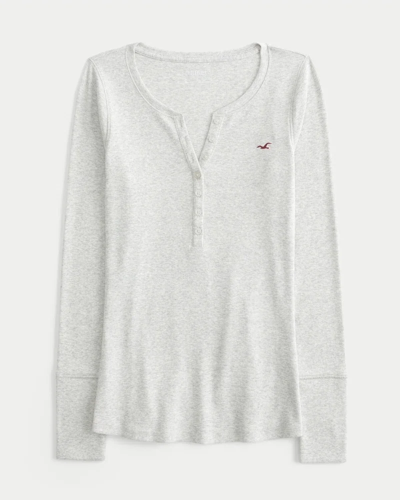 Cozy and super soft, this longer-length henley features a button placket and embroidered left chest logo icon. Long sleeves. Slim Fit.