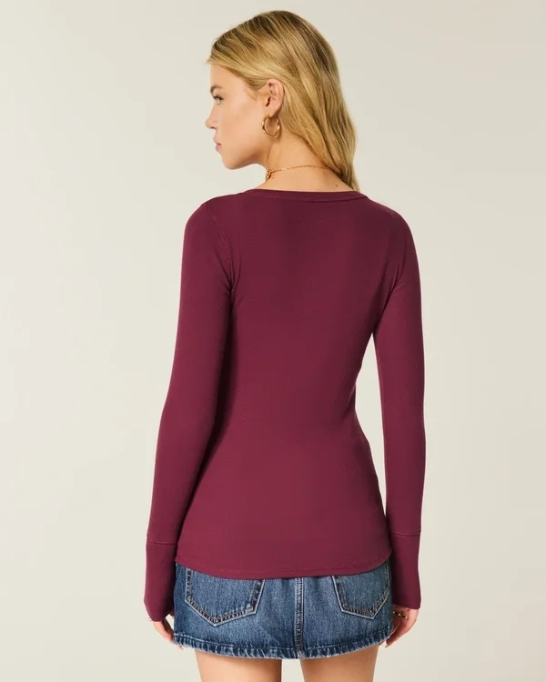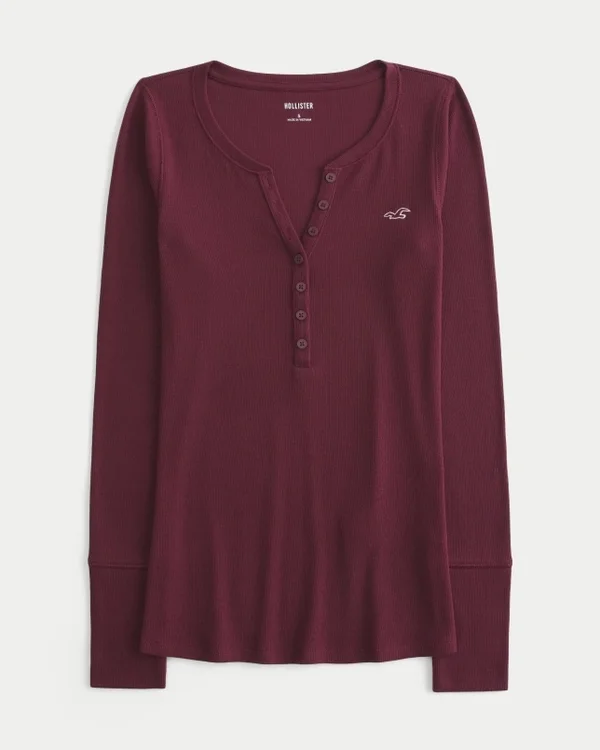 Cozy and super soft, this longer-length henley features a button placket and embroidered left chest logo icon. Long sleeves. Slim Fit.