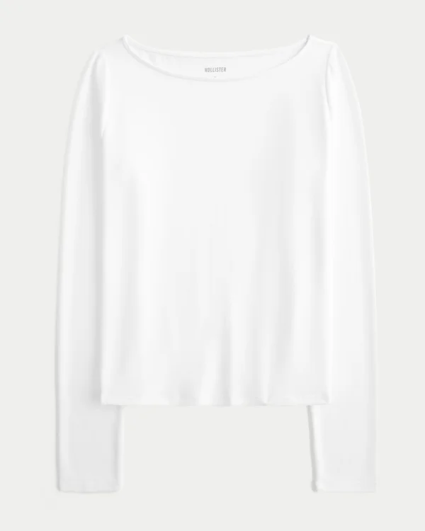 This cute and comfy top is made with super soft fabric with a seamless look and feel. Slash neckline, long sleeves. Slim Fit.