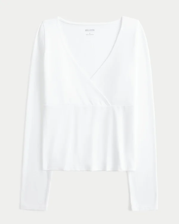 A cute and comfy long-sleeve top in super soft fabric with a seamless look and feel. Wrap-style v-neckline. Slim Fit.