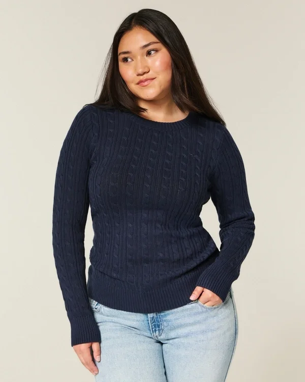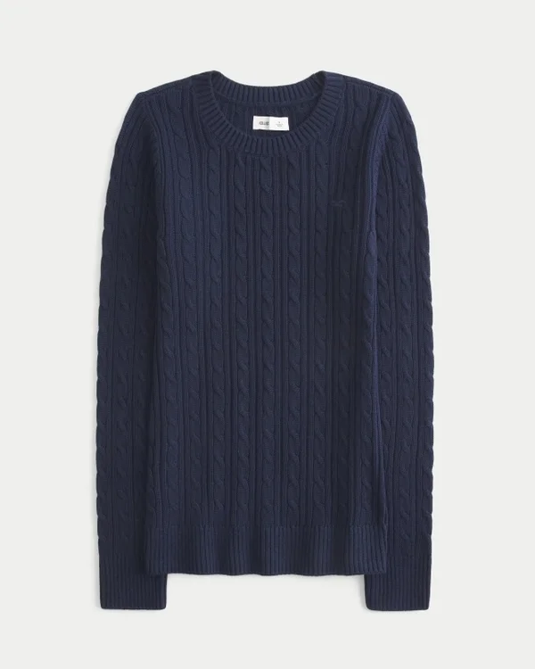 A cozy and super soft sweater with classic cable-knit patterns and an embroidered left chest logo icon. Crew neckline, long sleeves, ribbed trims. Slim Fit.
