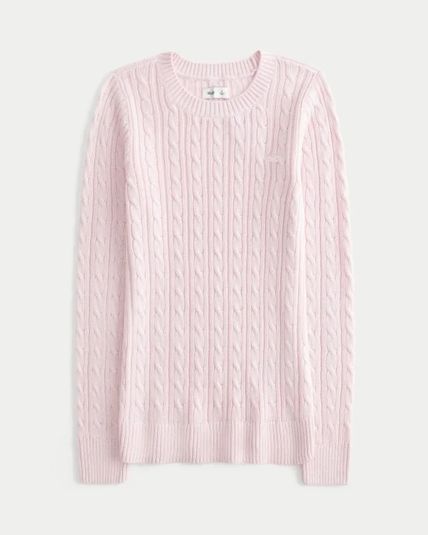 A cozy and super soft sweater with classic cable-knit patterns and an embroidered left chest logo icon. Crew neckline, long sleeves, ribbed trims. Slim Fit.