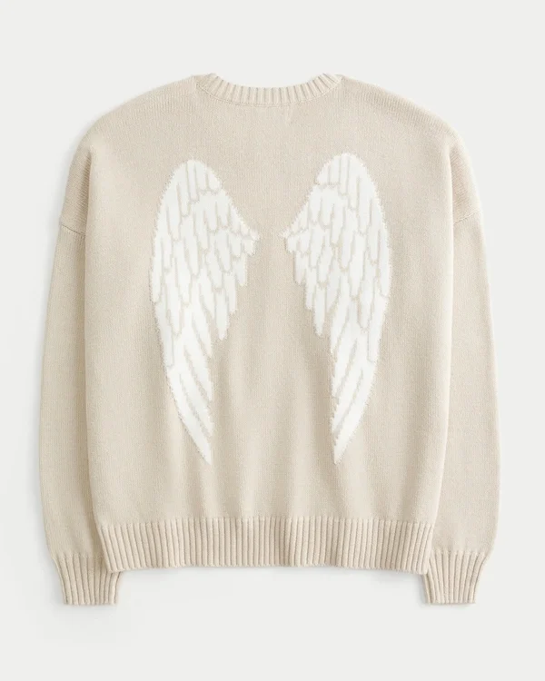 Cozy and super soft, this sweater features a wings intarsia graphic, crew neckline and long sleeves. Ribbed trims. Easy Fit.