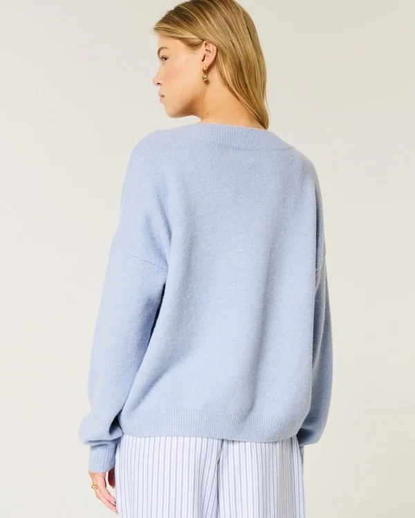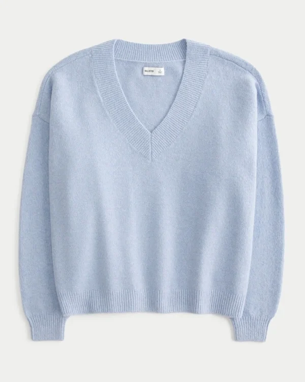 Unbelievably soft and cozy, this sweater features a v-neckline and ribbed trims. Long sleeves. Oversized Fit.