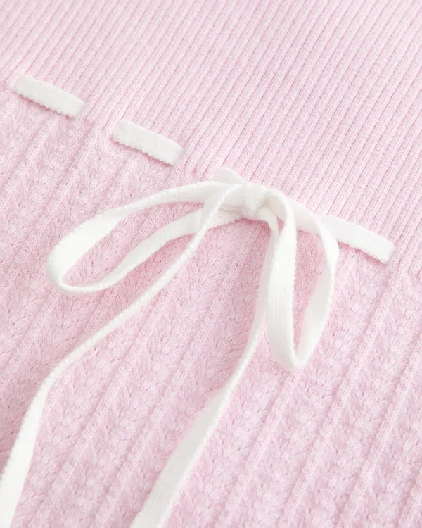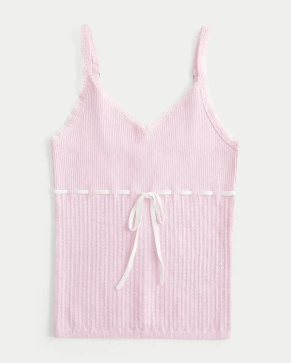 A pretty sweater-knit tank with cozy texture, featuring a pretty tie detail. Scalloped trim along the neckline.