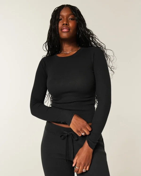 A cute and comfy long-sleeve baby tee designed with a slightly shrunken silhouette. Crew neckline, cotton-blend fabric. Slim Fit.