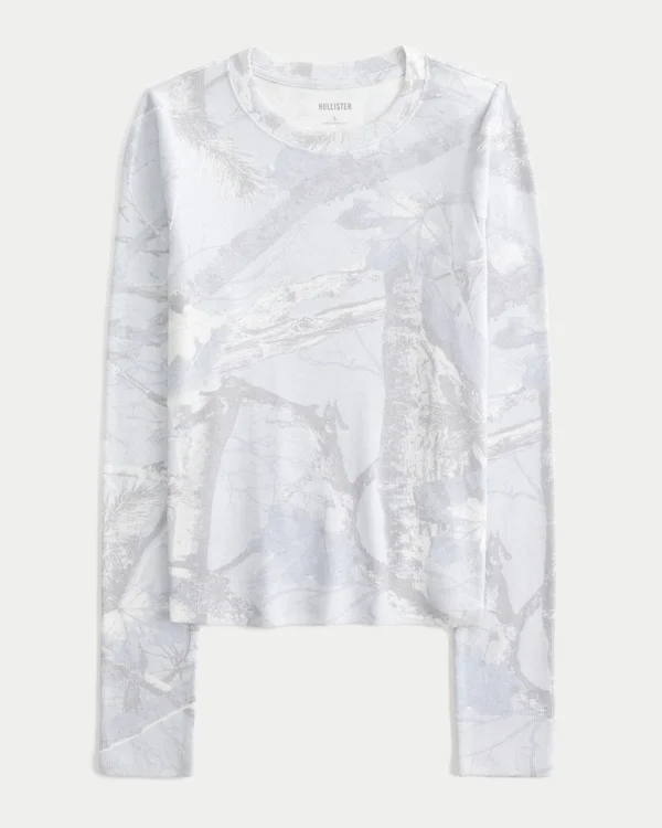 A cute and comfy long-sleeve baby tee designed with a slightly shrunken silhouette. Crew neckline, cotton-blend fabric. Slim Fit.