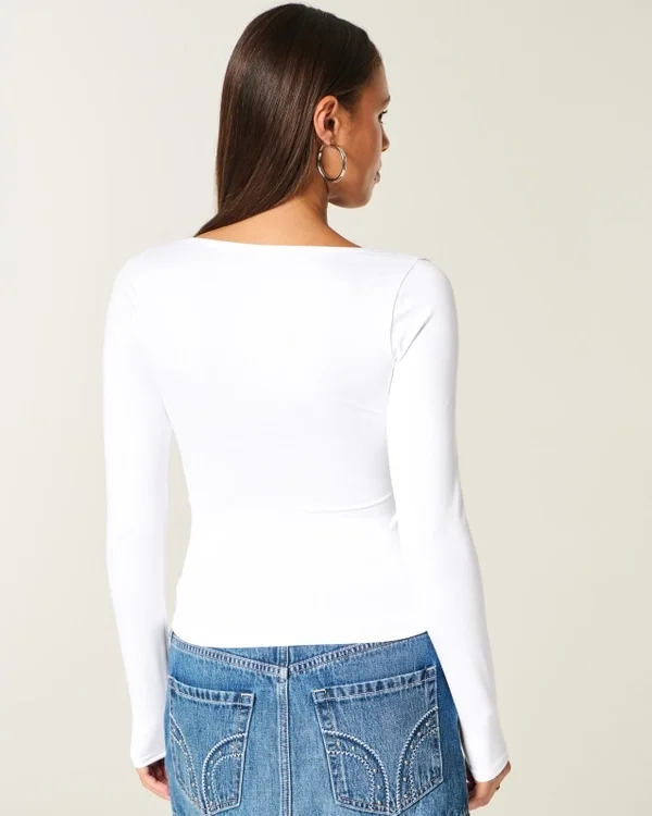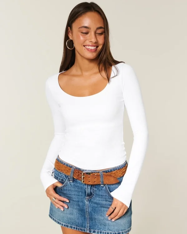 A cute and comfy baby tee in super soft fabric with a seamless look and feel. Scoop neckline, long sleeves. Slim Fit.